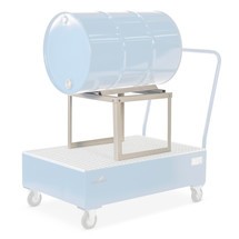 Su questi stabili telai si possono stoccare fino a due fusti in posizione orizzontale. Tramite rubinetti di scarico adatti, si travasano sostanze pericolose in modo pulito e sicuro. I supporti per fusti sono disponibili anche come cavalletto di travaso per contenitori da 60 l. |