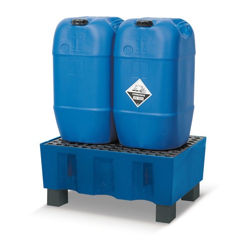 Con gli appositi alloggiamenti per vasche di contenimento, il materiale pericoloso e il contenitore sono protetti dagli agenti esterni. Lo stoccaggio di materiali pericolosi è quindi possibile in aree interne ed esterne (coperte). |