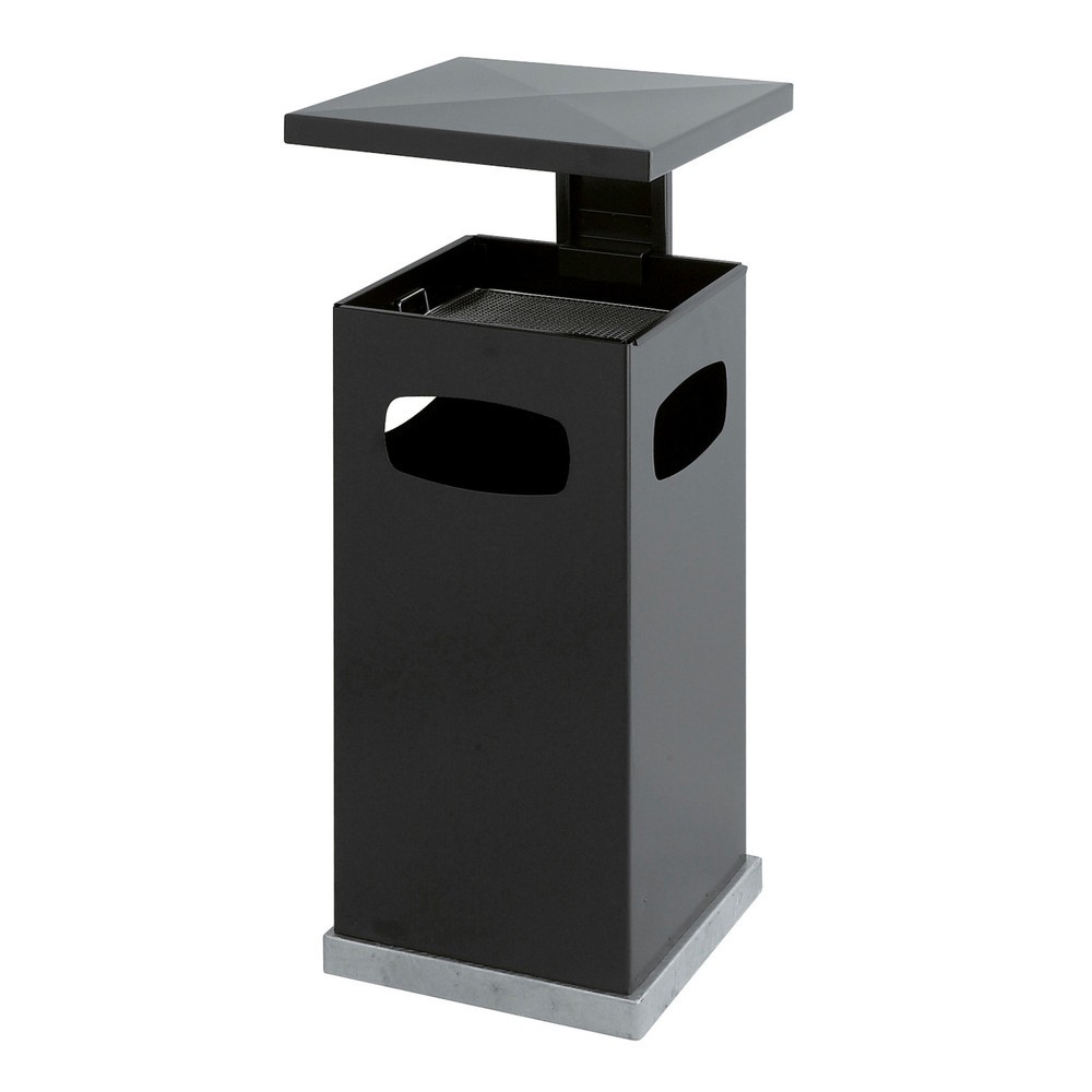 Combinazione posacenere-cestino dei rifiuti in acciaio, quadrato, tetto rimovibile, 70 litri, antracite