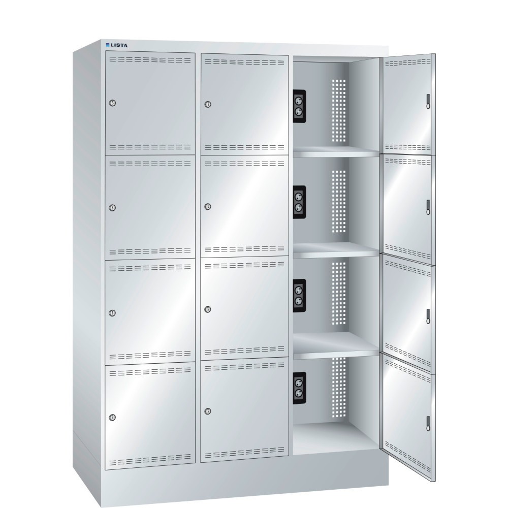 LISTA Armadio per ricarica batterie, (LxPxH) 1205x585x1790mm, 3x4 scomparti, 1 modulo per scomparto, grigio chiaro