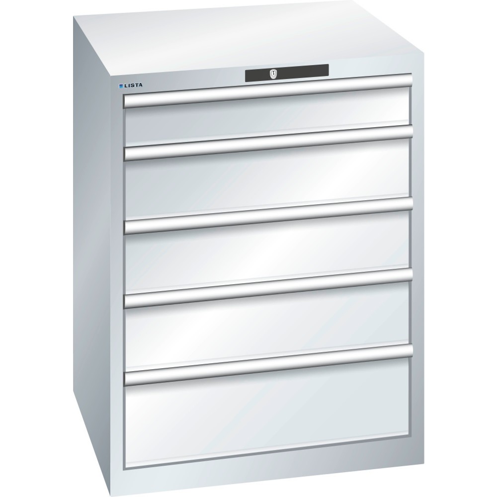 LISTA Cassettiera 36x36E, (LxPxH) 717x725x850mm, 5 cassetti, 1 x 100 / 3 x 150 / 1 x 200, grigio chiaro, CODE Lock