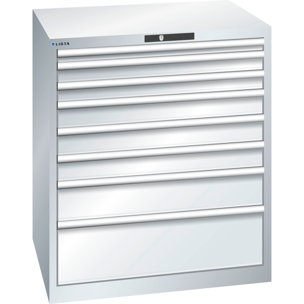LISTA Cassettiera 45x36E, (LxPxH) 870x725x1000mm, 8 cassetti, altezze frontali 50-250mm, grigio chiaro, RFID Lock