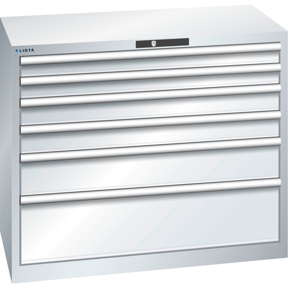 LISTA Cassettiera 54x27E, (LxPxH) 1023x572x850mm, 6 cassetti portata 200 kg, grigio chiaro, CODE Lock
