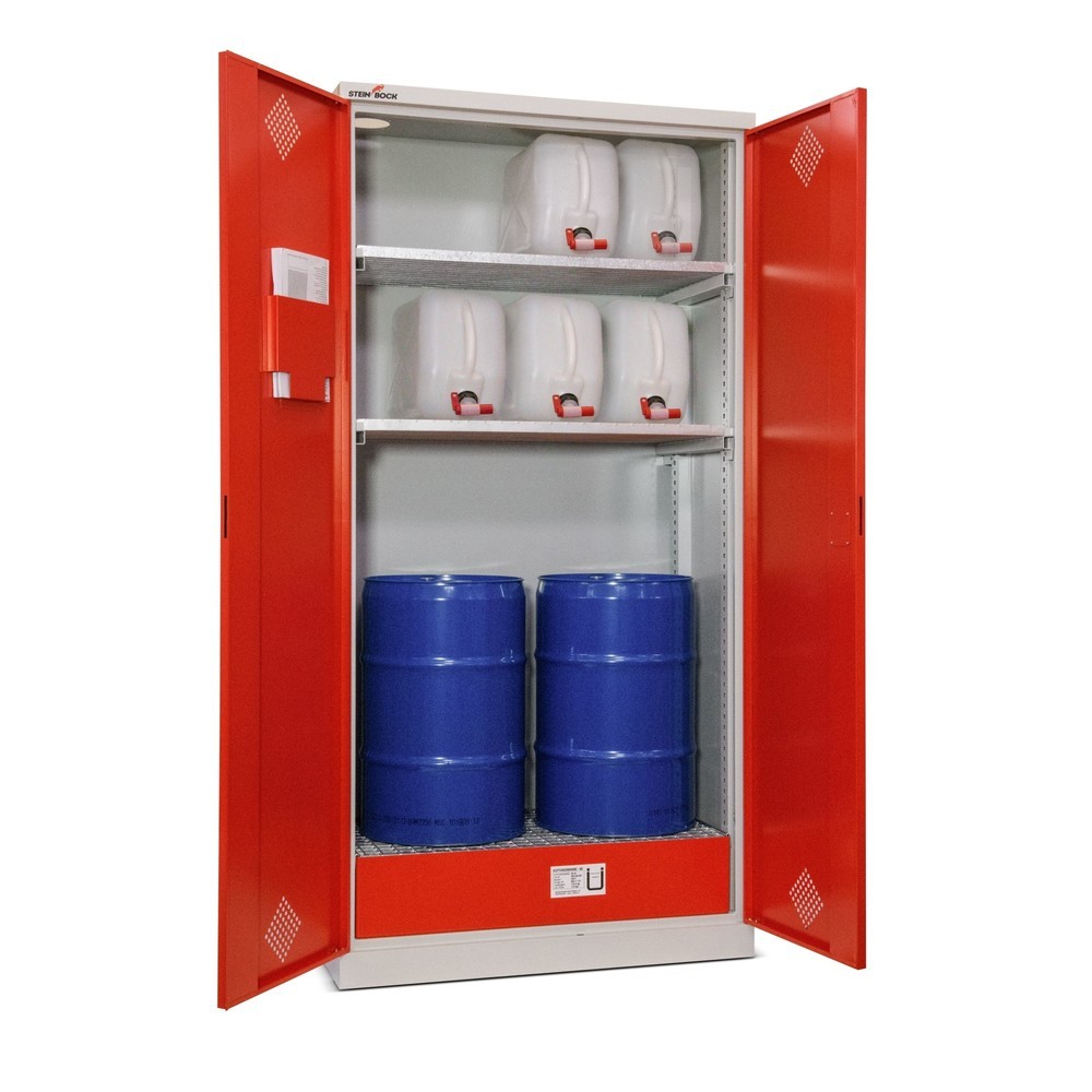 Armadio di sicurezza per oli Steinbock®, 2 ripiani a griglia regolabili in altezza, 1 vasca di raccolta, AxLxP 1.950 x 950 x 500 mm