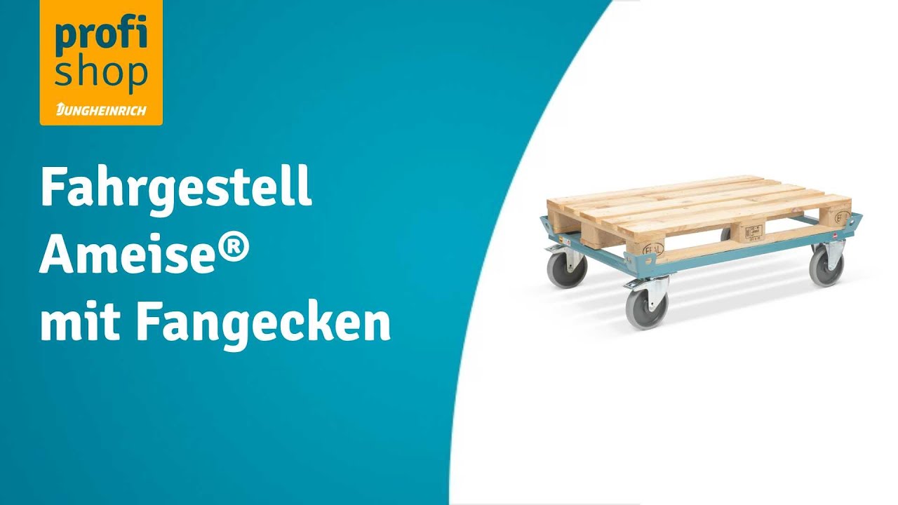 Grazie alla struttura saldata in acciaio verniciato a polvere, il supporto di guida Ameise®, con angoli rialzati è dotato di una portata elevata. È perfetto per i pallet EUR o i contenitori a griglia ed è dotato di angoli rialzati con occhielli di fissaggio.